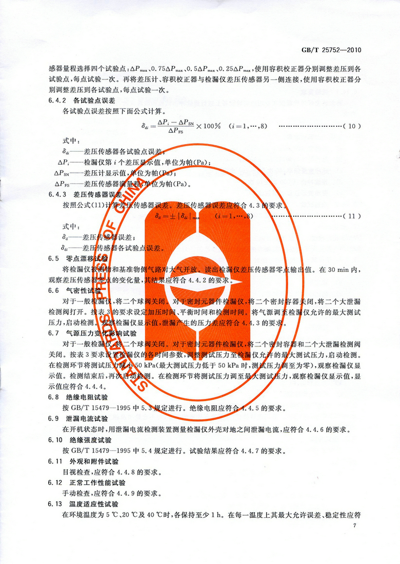 《差壓式氣密檢漏儀》GB/T 25752—2010