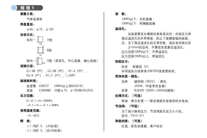 本產(chǎn)品符合日本工業(yè)(JIS)標(biāo)準(zhǔn),是一款性價(jià)比高,用途廣泛的壓力表。
