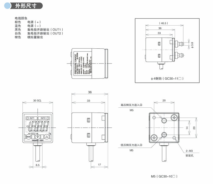 這是一款邊長(zhǎng)為30mm的小型數(shù)顯差壓表,配備了數(shù)字顯示,輸出等功能,體積小節(jié)省安裝空間
