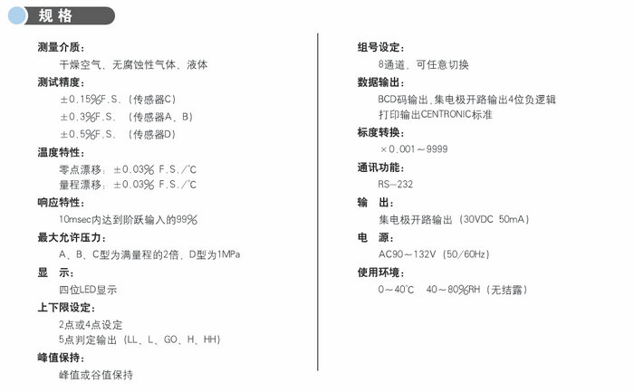 多功能高精度的數(shù)字壓力表,多通道測(cè)試,多種輸出方式,可顯示流量,載荷等多種物理量,廣泛用于各種自動(dòng)化調(diào)控設(shè)備