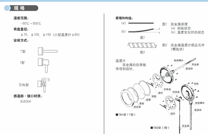 雙金屬溫度計,感應(yīng)元件是由兩種熱膨脹系數(shù)不同的金屬組成螺旋狀,它們會根據(jù)溫度的變化產(chǎn)生形變,指示溫度。