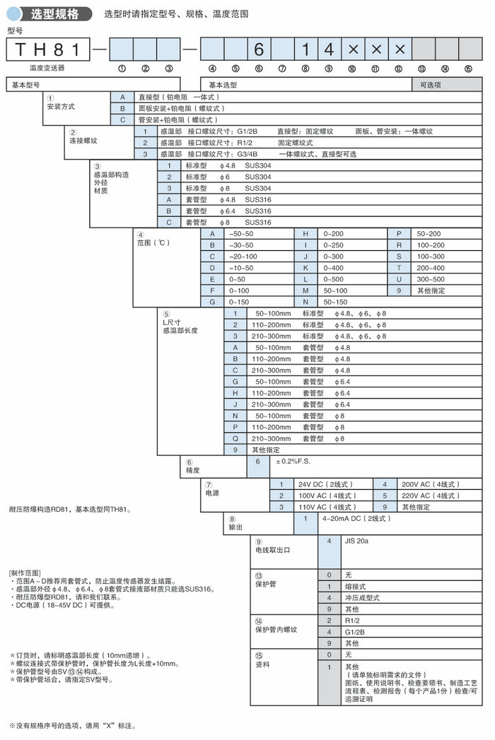 溫度計的安裝方式,傳輸方式和電源方式可選;