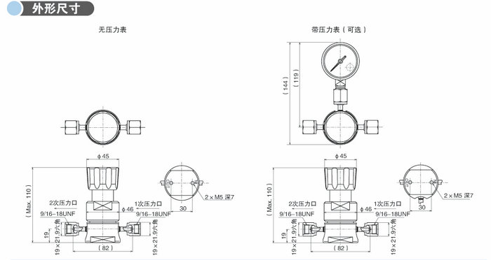 帶有二次側(cè)壓力監(jiān)測(cè)用壓力表。