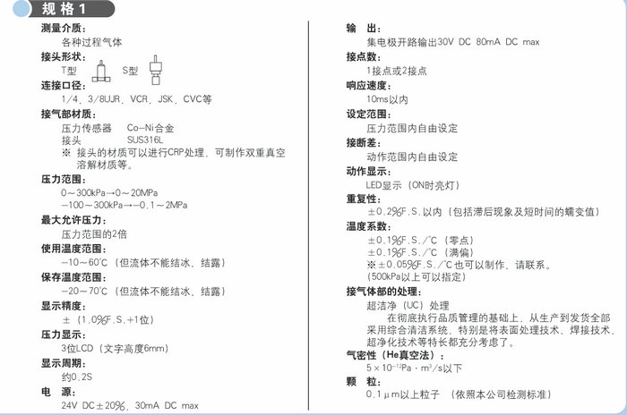 本產(chǎn)品帶有數(shù)字設(shè)定功能和壓力顯示功能,是具有超潔凈(UC)規(guī)格的壓力開關(guān)