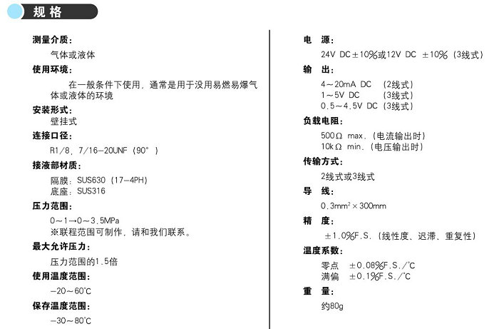 名稱:通用型壓力傳感器